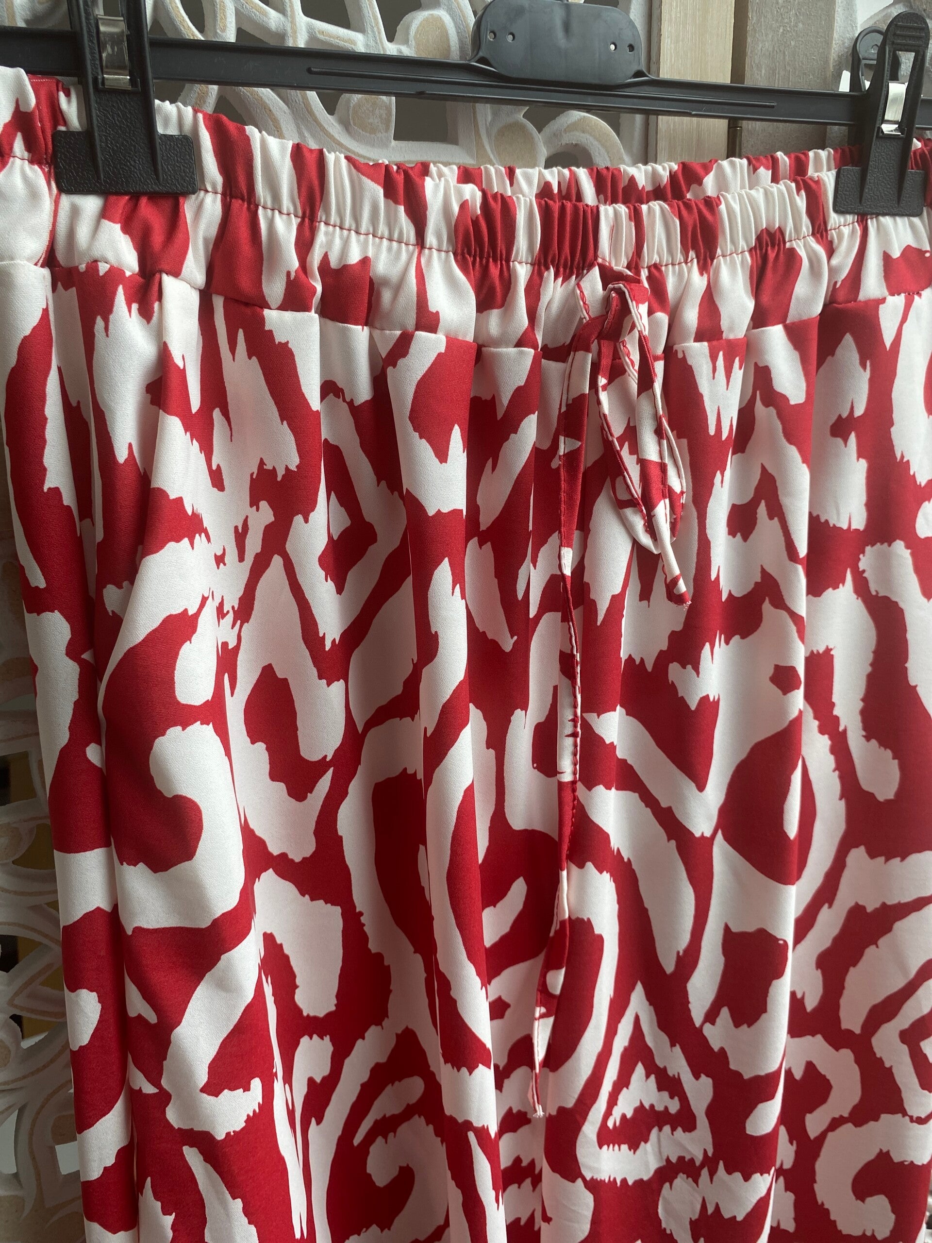 Palazzo blanc avec motif rouge, poches sur le côté, taille unique qui corresponds à un 36/42.